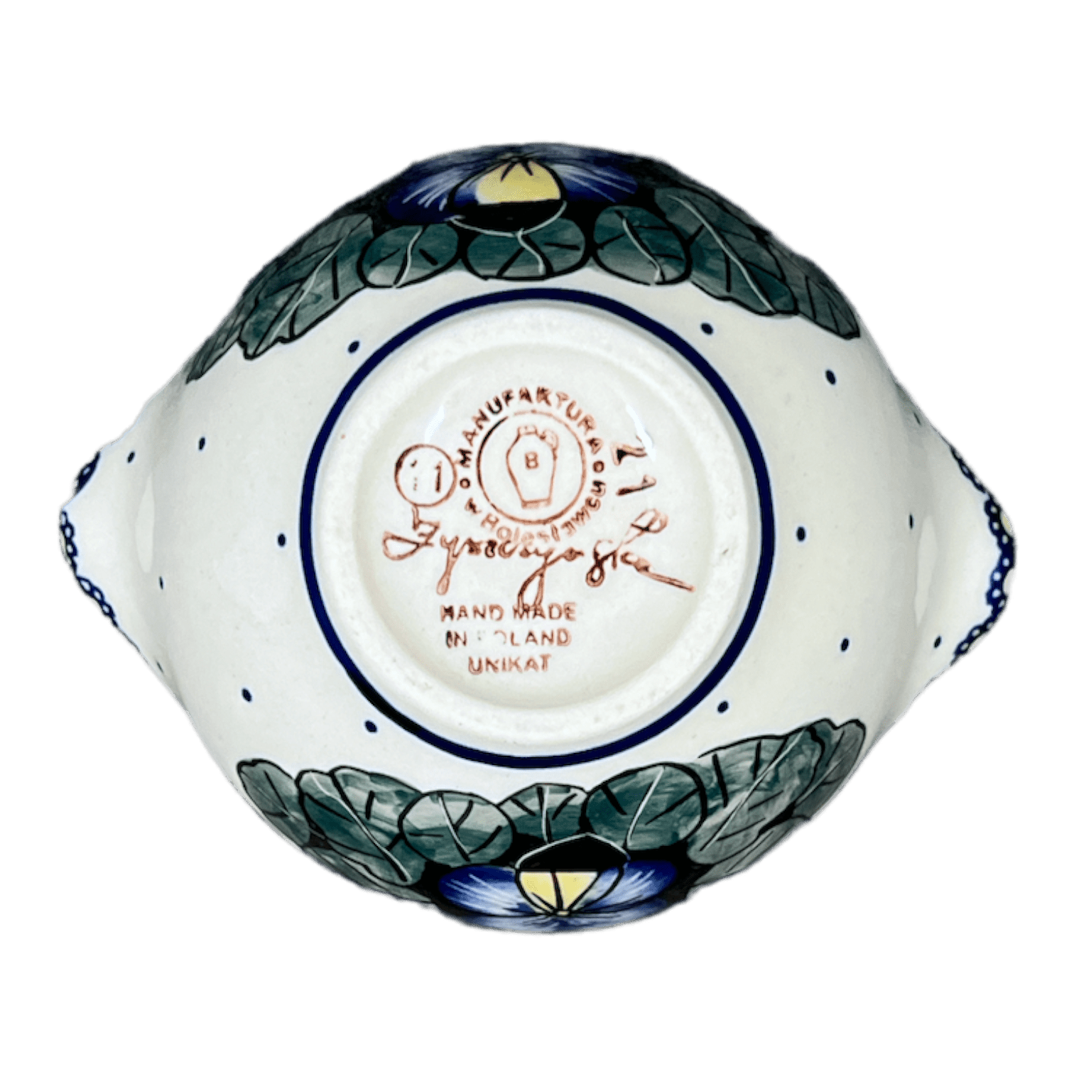 This sugar bowl is a product of passion and precision, hand-painted by the most accomplished artists at Manufaktura. Recognized for their supreme artistry, these creators are given the esteemed title to design from scratch, overseeing every step from inception to execution. This meticulous process ensures that each bowl is not only unique but also a signature piece, bearing the prestigious 'UNIKAT' stamp along with the artist’s own signature. Measuring 3 inches tall and 4.5 inches wide, this bowl holds 8 ounces of sweetness, perfect for enhancing your morning coffee or tea with elegance and flair.