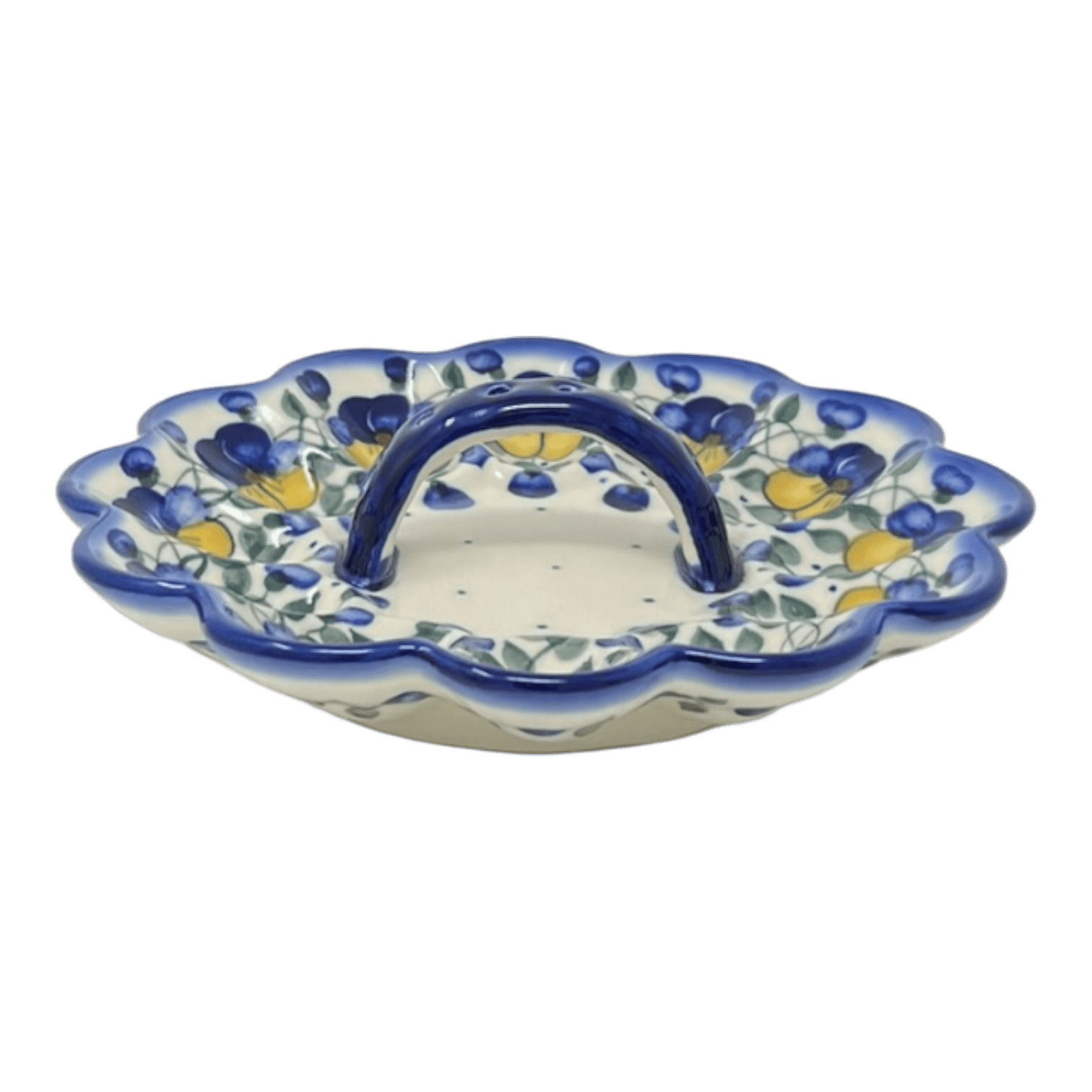 Plate, Round, Egg Plate, With Handle, 9.5", WR (WR19B) in "Pansy Wreath" by W.R. Ceramika | WR19B-EZ2 is backordered and will ship as soon as it is back in stock.
