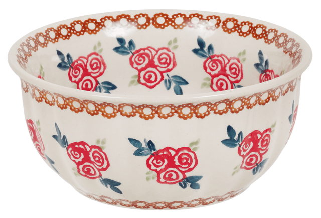 Each piece of this Polish pottery is crafted with the utmost care and precision in Boleslawiec, Poland, where artisans use the ancient "punching" technique of hand stamping to bring the vibrant designs to life. The "Parade of Roses" pattern is a part of the Traditional collection, known for its widespread recognition and simplicity that belies its intricate craftsmanship. No two pieces are exactly alike, thanks to the individual artistry of each creator, making your bowl a unique masterpiece. Not only is it a feast for the eyes, but it's also built to last, being chip resistant and safe for use in the dishwasher, microwave, and even the oven up to 425 degrees.