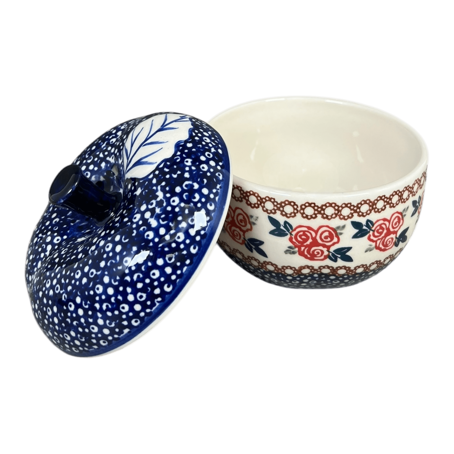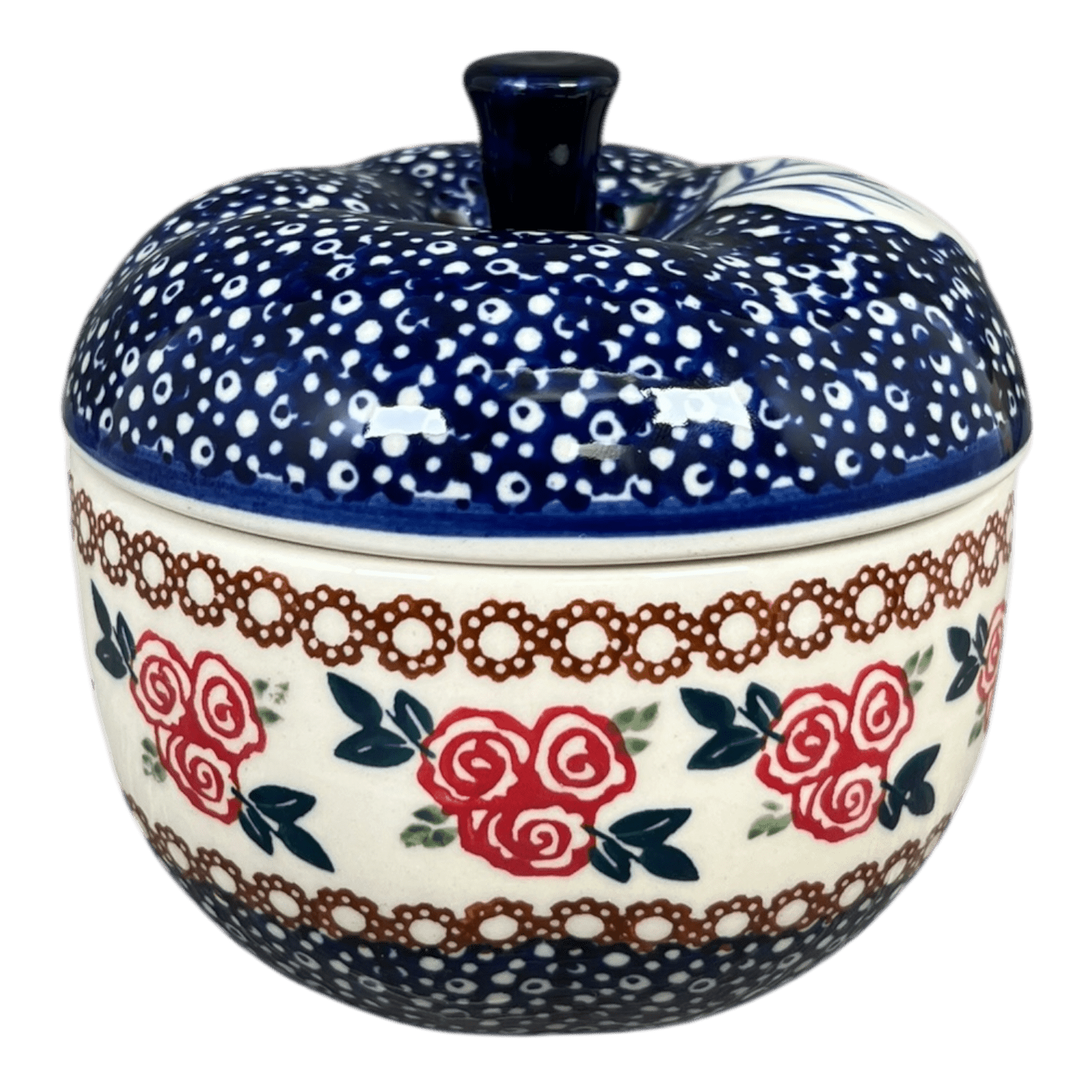 Imagine a kitchen where every meal feels like a celebration, and each dish is served with a splash of color and artistry. Enter the world of the Polish Pottery Baker from Manufaktura, specifically in the enchanting "Parade of Roses" pattern. This delightful 4.5-inch apple baker isn't just a vessel; it's a canvas painted with clusters of simple red roses, encircled by tiny teal leaves on a charming blue background speckled with white dots. Whether you're baking an apple sprinkled with cinnamon and sugar or steaming vibrant vegetables, this baker turns every cooking experience into a festive affair.