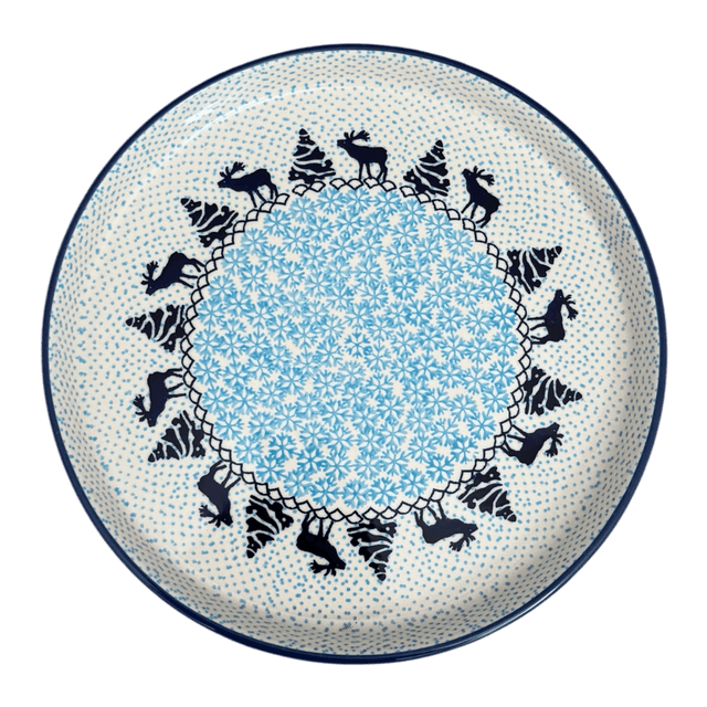 Imagine a serene winter evening, the air crisp and the sky painted in shades of twilight. Now, picture bringing that tranquility right into your dining room with the Manufaktura Polish Pottery Tray in the enchanting "Peaceful Season" pattern. This charming 10.25" round tray isn't just a dish; it's a portal to a whimsical winter wonderland, featuring majestic dark blue moose and delicate Christmas trees, all encircled by a flurry of light blue and white snowflakes. Each element is meticulously hand-stamped using the traditional "punching" technique, showcasing the remarkable craftsmanship of Boleslawiec’s skilled artisans.