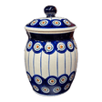 Imagine a world where every glance at your kitchen counter brings a smile, thanks to the enchanting Polish Pottery Canister from Manufaktura. Standing proudly at 6 inches tall and 4.5 inches in diameter, this 0.5-liter treasure is not just a container, but a piece of art. Adorned with the mesmerizing "Peacock in Line" pattern, it features an exquisite design of peacock circles sprawling across a vivid blue background, with delicate fine lines stretching to the edges. This traditional pattern, crafted in the heart of Boleslawiec, Poland, is a testament to the timeless beauty and charm of Polish pottery, making it a stunning addition to any space.
