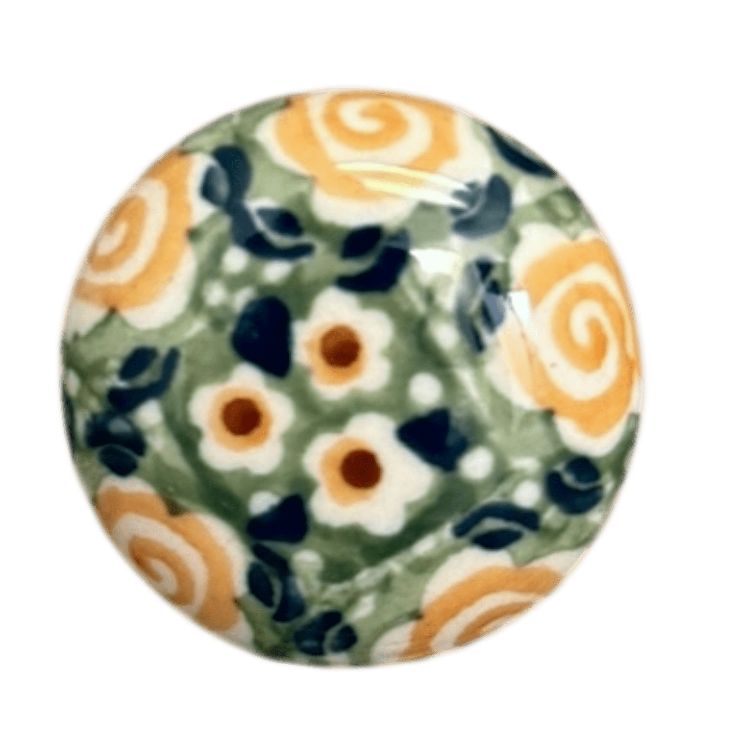 Imagine transforming your everyday living space with a touch of artisan charm and a splash of vibrant colors. The Polish Pottery Drawer Pull from Manufaktura, adorned in the delightful "Perennial Garden" pattern, does just that! Each 1.5-inch knob is a miniature masterpiece, featuring an enchanting green background intricately decorated with thin bands of tiny white and orange flowers, swirling orange accents, and simple blue blossoms encircling the center. Hand-painted in the historic town of Boleslawiec, Poland, these knobs are not just hardware—they are a gateway to a world of floral fantasy right in your own home.