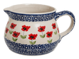 The beauty of the "Poppy Garden" pattern lies in its traditional artistry, featuring a picturesque array of simple white flowers set against a serene blue backdrop, encircled by a lively band of large poppies in radiant reds with lush green stems. Each piece, hand-stamped using the "punching" technique by skilled artisans in Boleslawiec, Poland, showcases a dance of colors inspired by nature. Traditional in its design, this pattern represents a harmonious blend of art and heritage, making each pitcher not just a serving item but a piece of art to admire.