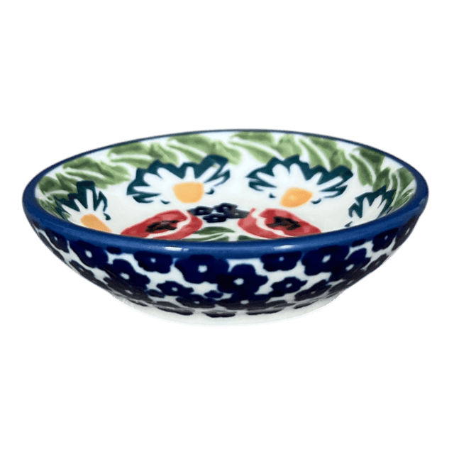 Imagine a splash of vibrant colors and exquisite designs that transform even the simplest of spaces into a charming nook. Enter the Polish Pottery Bowl from Manufaktura, a delightful piece adorned with the lively "Poppy Parade" pattern. This isn't just any bowl; it's a 3-inch canvas of creativity, showcasing a white background embraced by a band of green, dotted with tiny blue blossoms, and crowned with radiant red poppies dancing around the center. Whether it's cradling your favorite condiments, housing your precious trinkets, or adding a dash of floral flair to your desk, this bowl promises not only utility but a feast for the eyes!