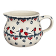 Introducing the charming Manufaktura 1 Liter Polish Pottery Pitcher, adorned with the delightful "Red Bird" pattern (GILE). Not just any ordinary pitcher, this piece combines utility with a burst of artistic flair. Ideal for those heartwarming gatherings, it holds a generous liter of your favorite sauces, syrups, or gravies—equivalent to over 4 cups! Its robust design features a wide base, making it the perfect choice for lively tables where accidents might happen. When the less coordinated among us join your feast, you can rest easy replacing fragile decorations with this sturdy, 'sure-footed' gem.