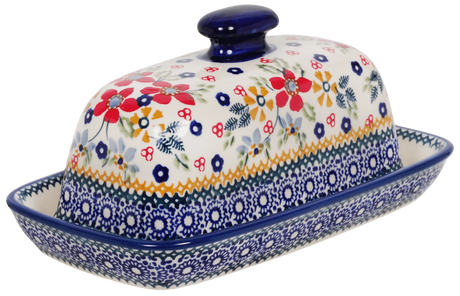 Butter Dish, American, 4" x 7.5" in "Ruby Bouquet" by Manufaktura | M074S-DPCS