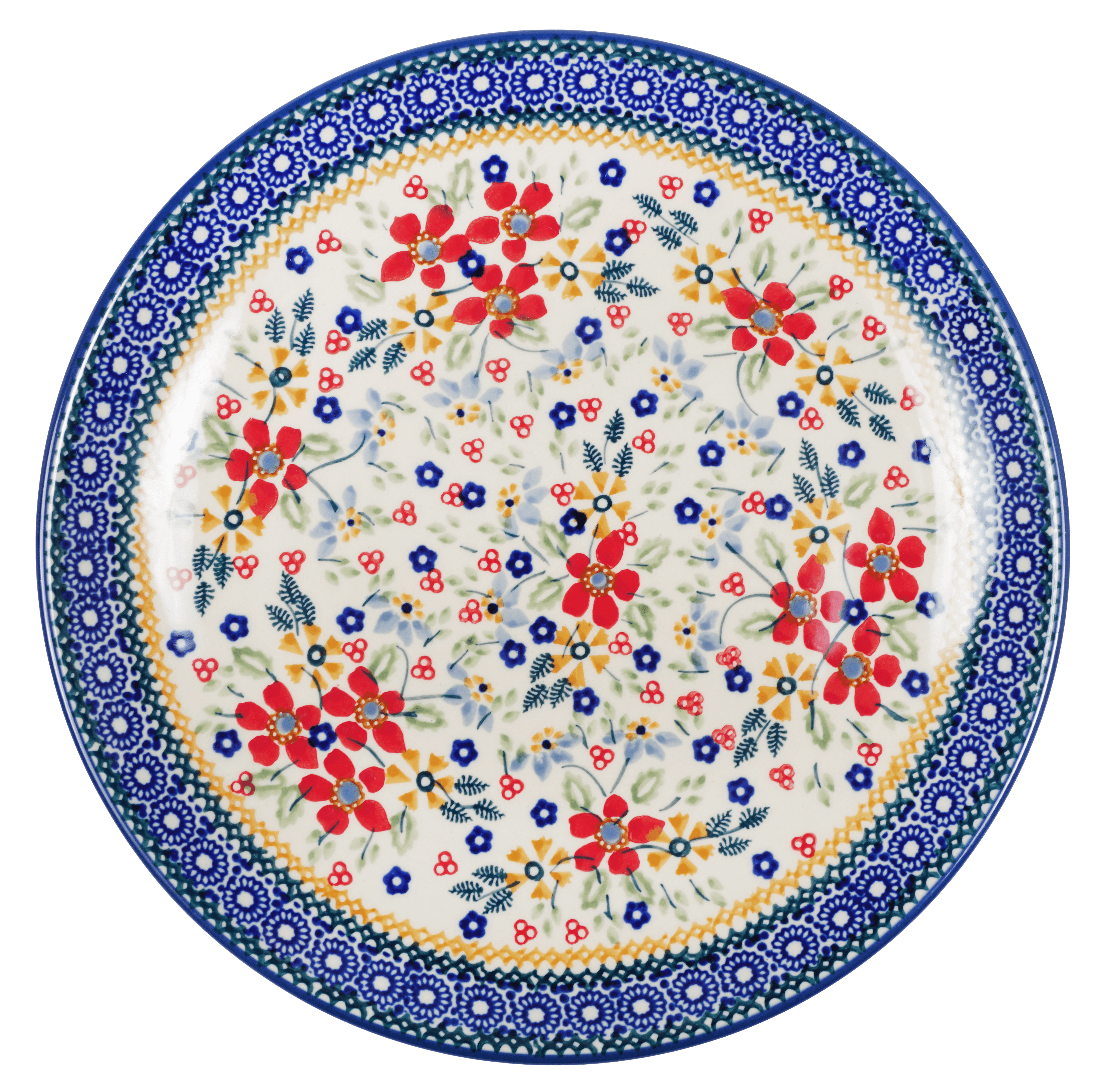 Introducing the Polish Pottery 10" Round Dinner Plate by Manufaktura in the enchanting "Ruby Bouquet" pattern (DPCS). This dinner plate not only serves up the perfect portion for today's healthy lifestyle, but also adds a touch of elegance to any dining experience.