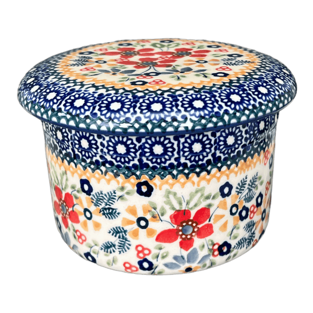 Imagine a touch of timeless elegance and vibrant charm right on your kitchen counter! Introducing the Polish Pottery Butter Crock, crafted by the renowned artisans of Manufaktura in the picturesque town of Boleslawiec, Poland. This 4.5-inch gem is not just any butter holder; it's a little treasure that keeps your butter fresh and spreadable without refrigeration. How, you ask? It cleverly sits above a small bath of water, creating a seal that ensures your butter remains fresh and creamy. Just add a pinch of salt to the water for an extra trick to keep the edges mold-free. This means less fuss and more time enjoying your meals with perfectly soft butter!