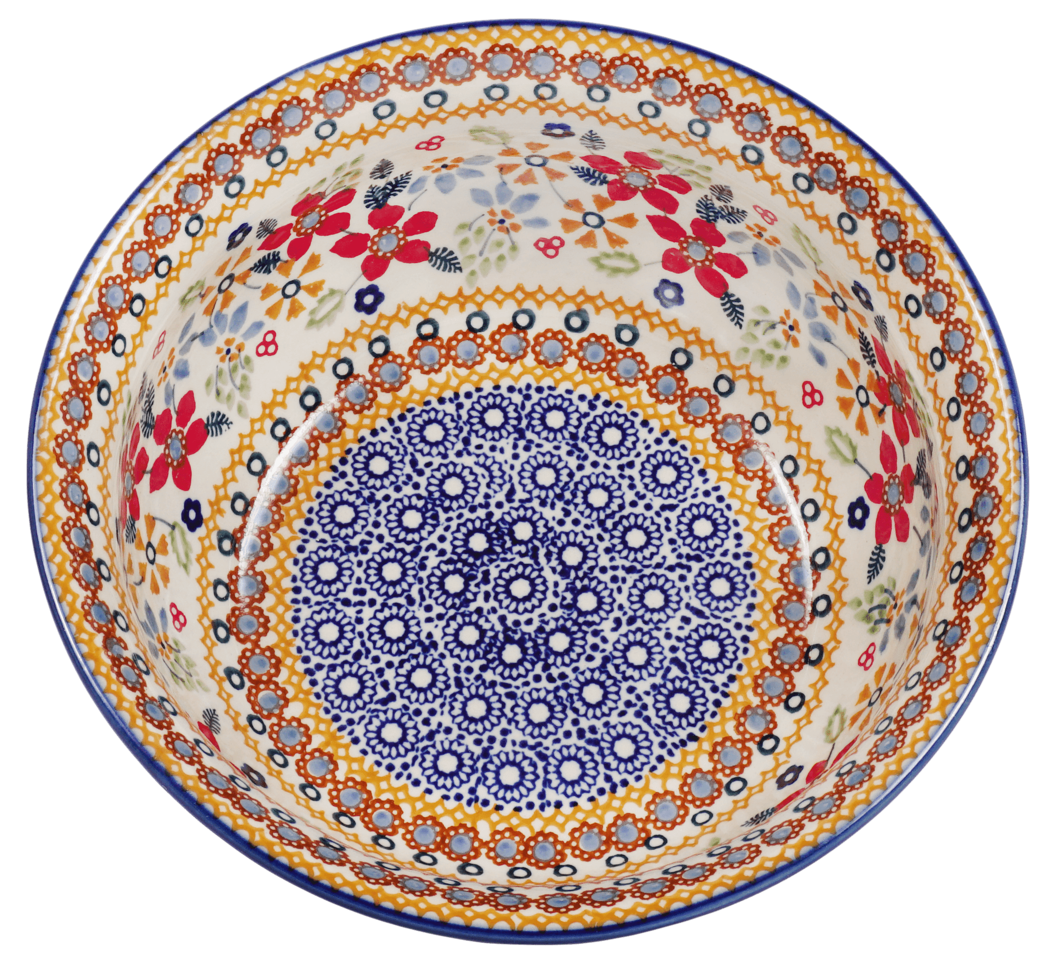 Not only is this Polish pottery bowl a visual delight, but it's also built to stand the test of time. Made from high-quality materials, it's tough, durable, and resistant to chips. Safe for use in the dishwasher, microwave, freezer, and oven (up to 425 degrees), it's as functional as it is beautiful. Whether you're mixing and matching with other pieces to create a stunning table display or using it as a standout piece, this bowl is sure to impress your guests and bring a splash of color to your home decor. Celebrate the tradition and beauty of Polish craftsmanship with this exquisite Manufaktura bowl, a centerpiece worthy of any occasion.