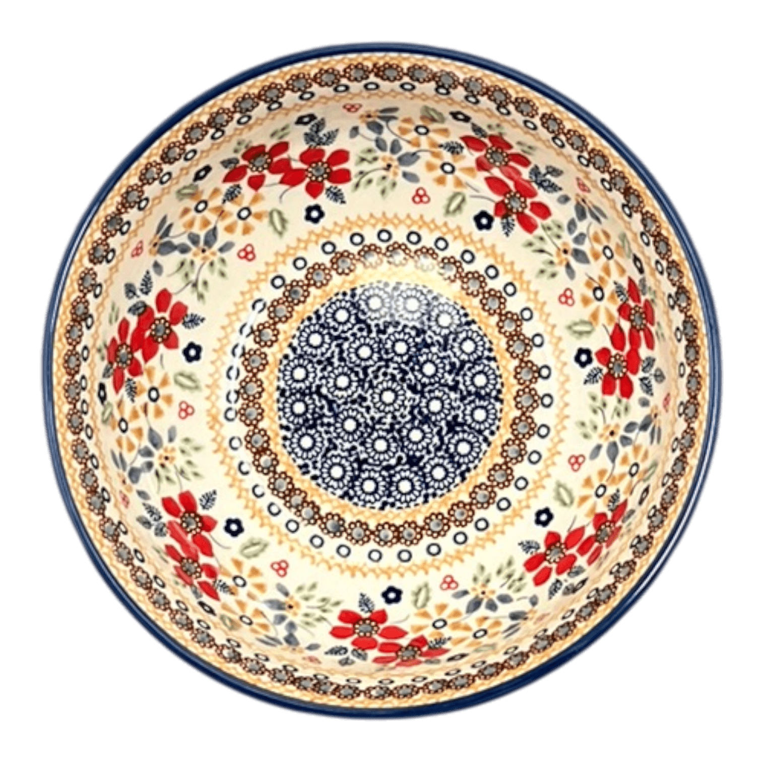 Polish Pottery is renowned not only for its aesthetic appeal but also for its durability and functionality. This bowl is built to last, crafted from materials that are resistant to chips, and safe for use in the dishwasher, microwave, oven (up to 425 degrees), and freezer. It's a harmonious blend of beauty and practicality, free of lead, nickel, and cadmium, ensuring safety for you and your loved ones. Since its inception in 1992, Manufaktura has set trends and raised standards in the pottery world, making it a leader in the market. Add a splash of color and tradition to your table setting with this exquisite piece of Polish heritage that promises to enchant and inspire.