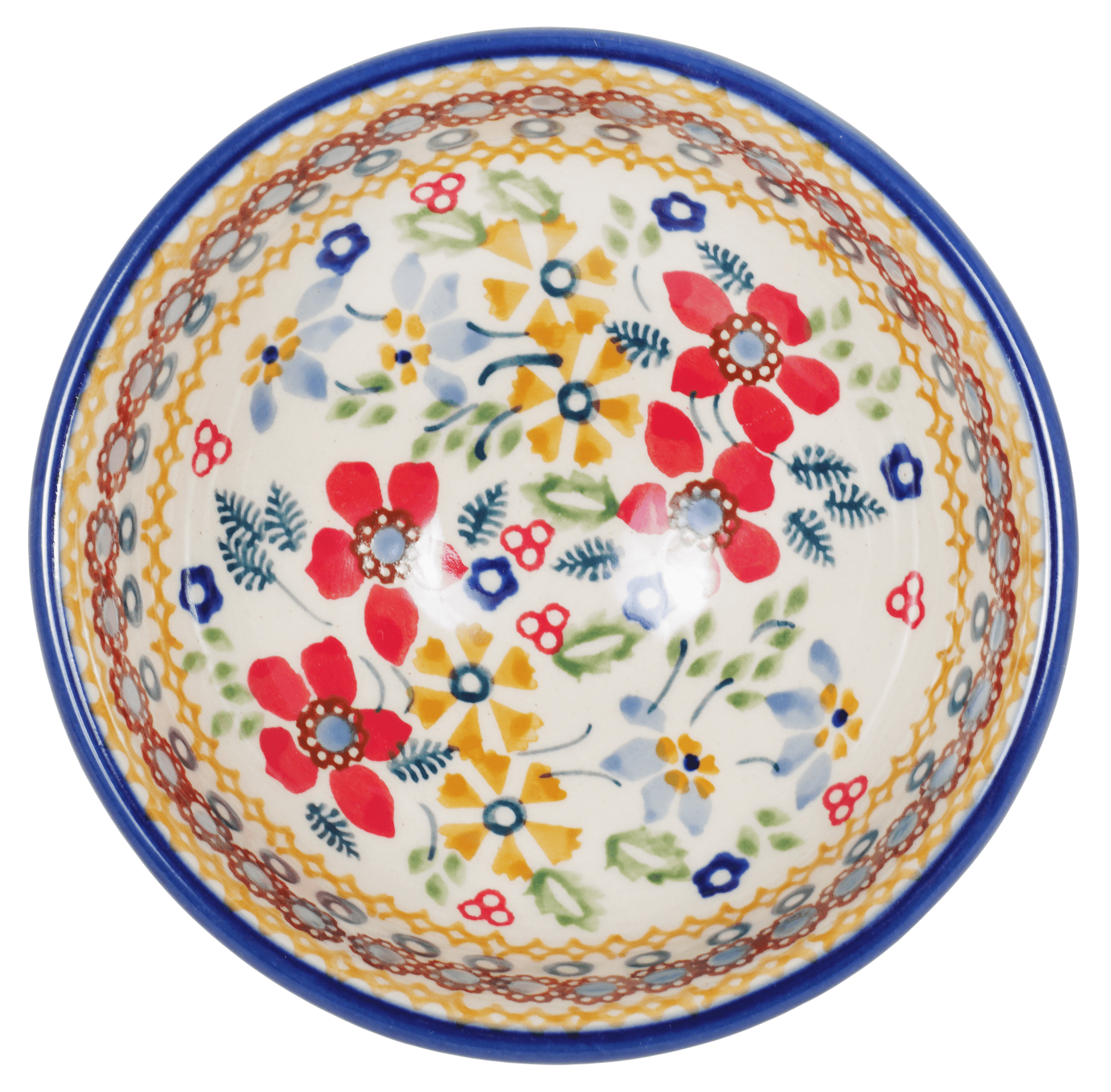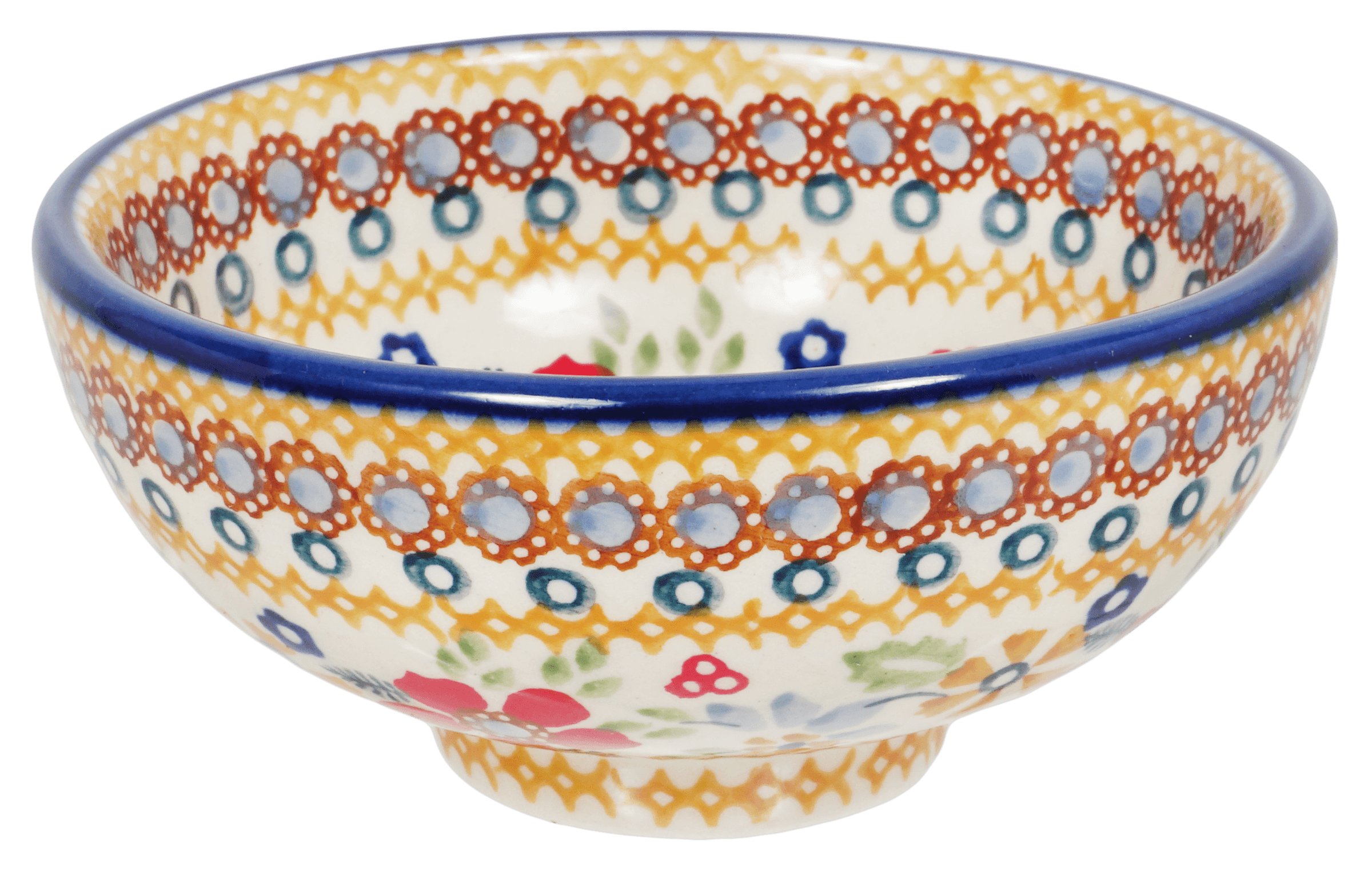 Not only is this dipping bowl a feast for the eyes, it is also highly functional. With a capacity of 4 1/4" Dia. x 2 5/8" tall, it is the perfect size for your favorite dips and sauces. And the best part? It is safe for use in the dishwasher, refrigerator, microwave, freezer, and even the oven (up to 425 degrees)! Made and hand-painted in Boleslawiec, Poland by skilled artisans, you can trust that this bowl is made with the highest quality materials, ensuring durability and chip resistance.