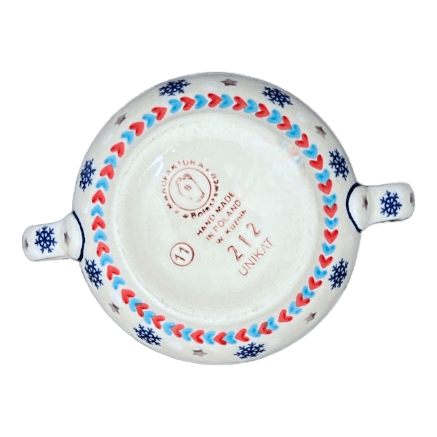 The "Snowflake Love" pattern isn’t just visually appealing; it represents a special tier of artistry known as Unikat. In Polish, Unikat means "Unique," and it signifies a level of craftsmanship that transcends the ordinary. These patterns are brought to life by a select group of artists who, as they hone their skills, graduate to creating these intricate designs. Each Unikat piece, including our lovely sugar bowl, is marked with a "UNIKAT" stamp on the bottom— a testament to its authenticity and exclusivity. This stamp not only symbolizes the pattern’s uniqueness but also serves as a hallmark of quality and pride from the Manufaktura artisans in Boleslawiec, Poland.