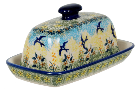 Butter Dish, American, 4" x 7.5" in "Soaring Swallows" by Manufaktura | M074S-WK57