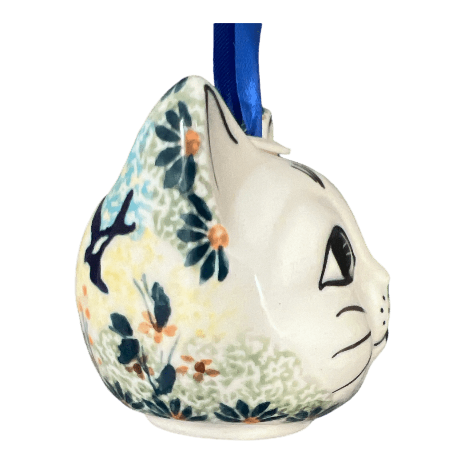 Ornament, Cat Head in "Soaring Swallows" by Manufaktura | K142S-WK57 is backordered and will ship as soon as it is back in stock.