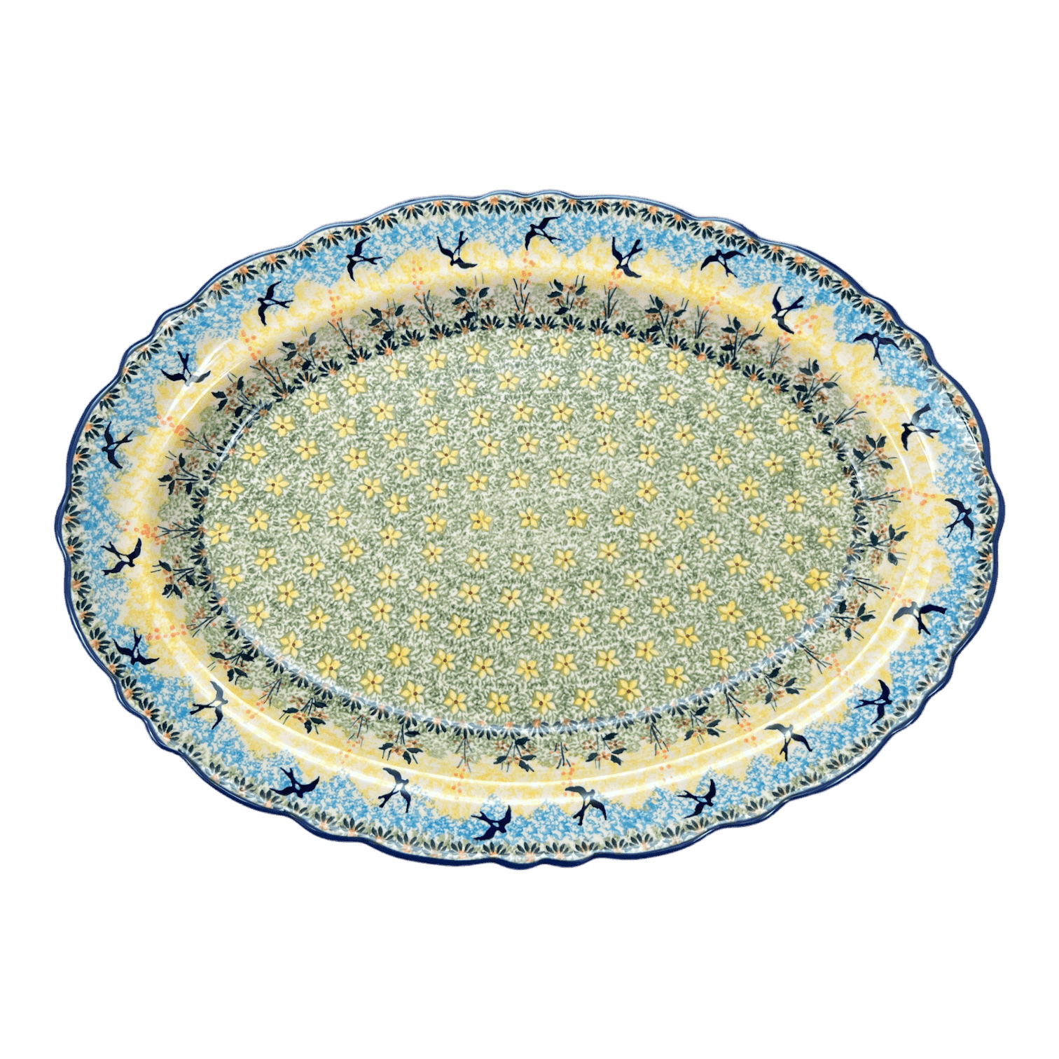 Platter, Oval, Scalloped, 16.75" x 12.25" Large in "Soaring Swallows" by Manufaktura | P165S-WK57 is backordered and will ship as soon as it is back in stock.
