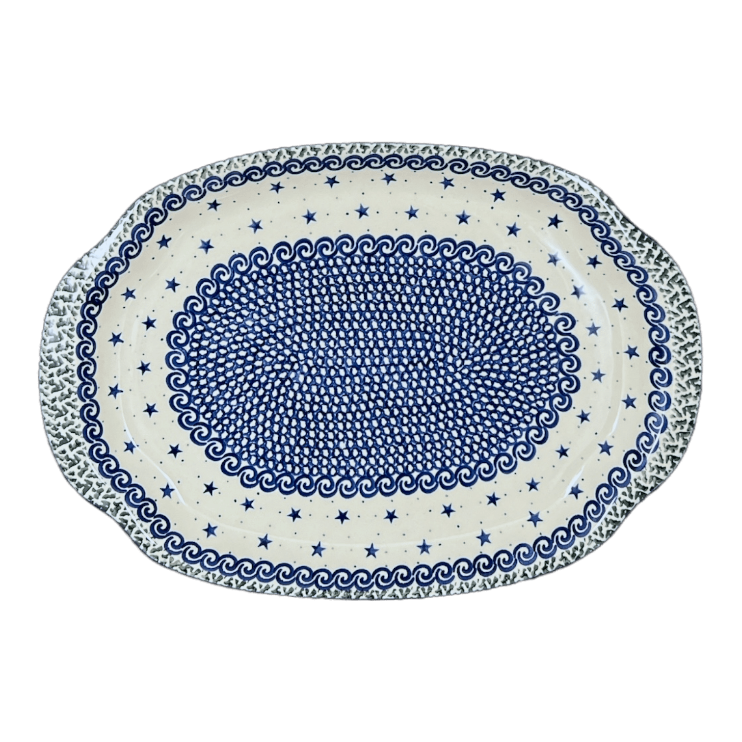 Tray, Oval, Handles, 10.75" x 15.25" in "Starry Sea" by Ceramika Artystyczna | A684-454C is backordered and will ship as soon as it is back in stock.