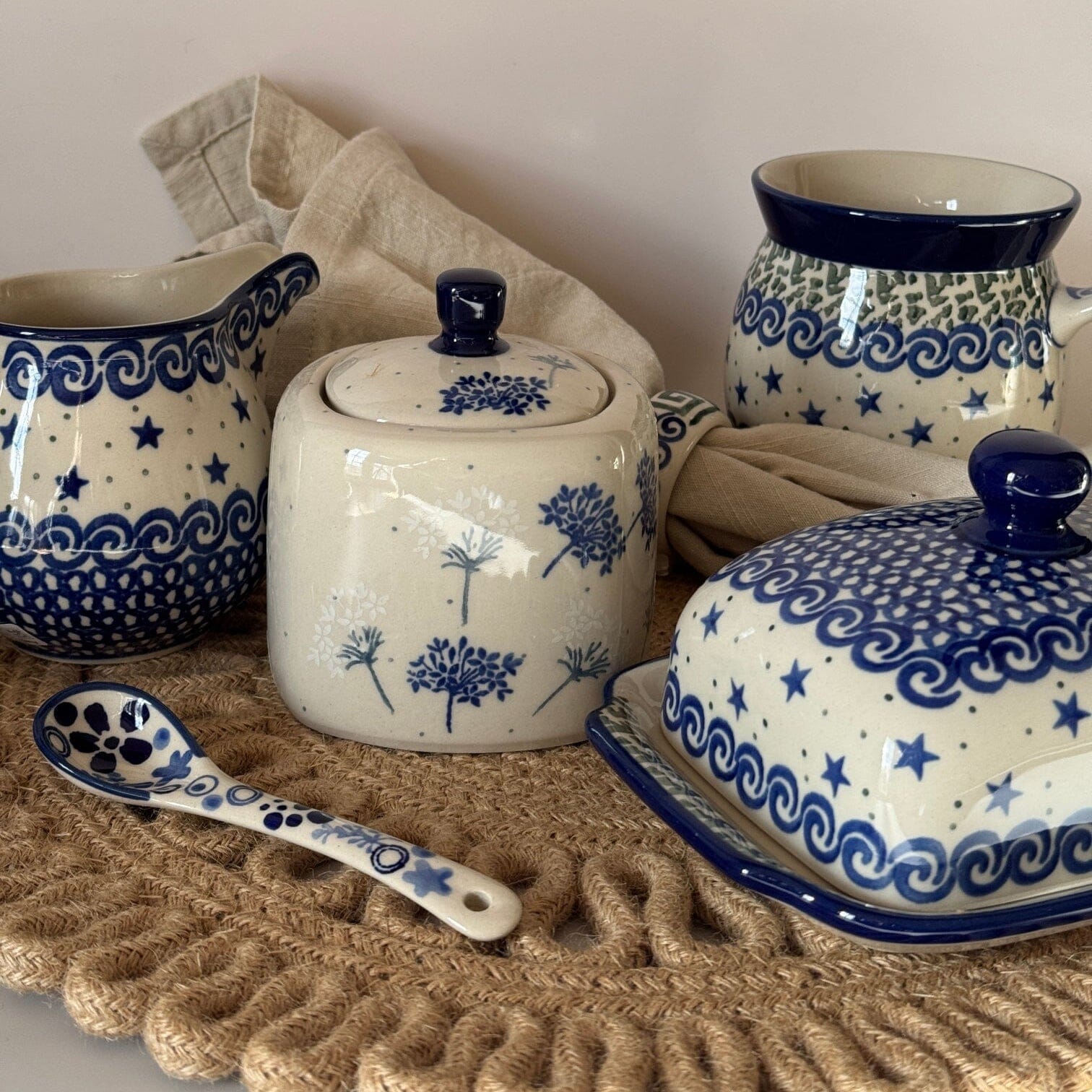 Butter Dish, 7" x 5.5" in "Starry Sea" by Ceramika Artystyczna | A295-454C is backordered and will ship as soon as it is back in stock.