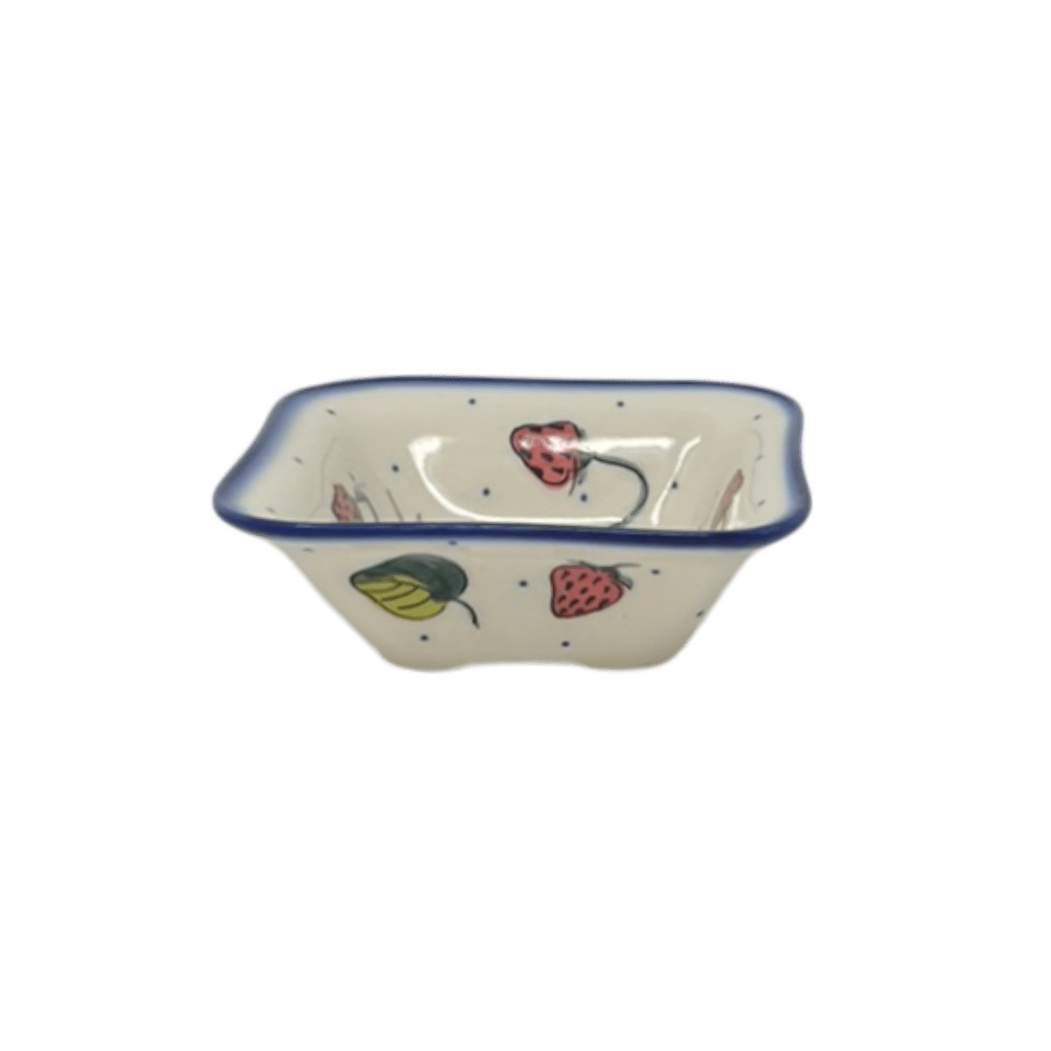 Bowl, Square, 5.25" Small, WR (WR12G) in "Strawberries & Blossoms" by W.R. Ceramika | WR12G-WR2