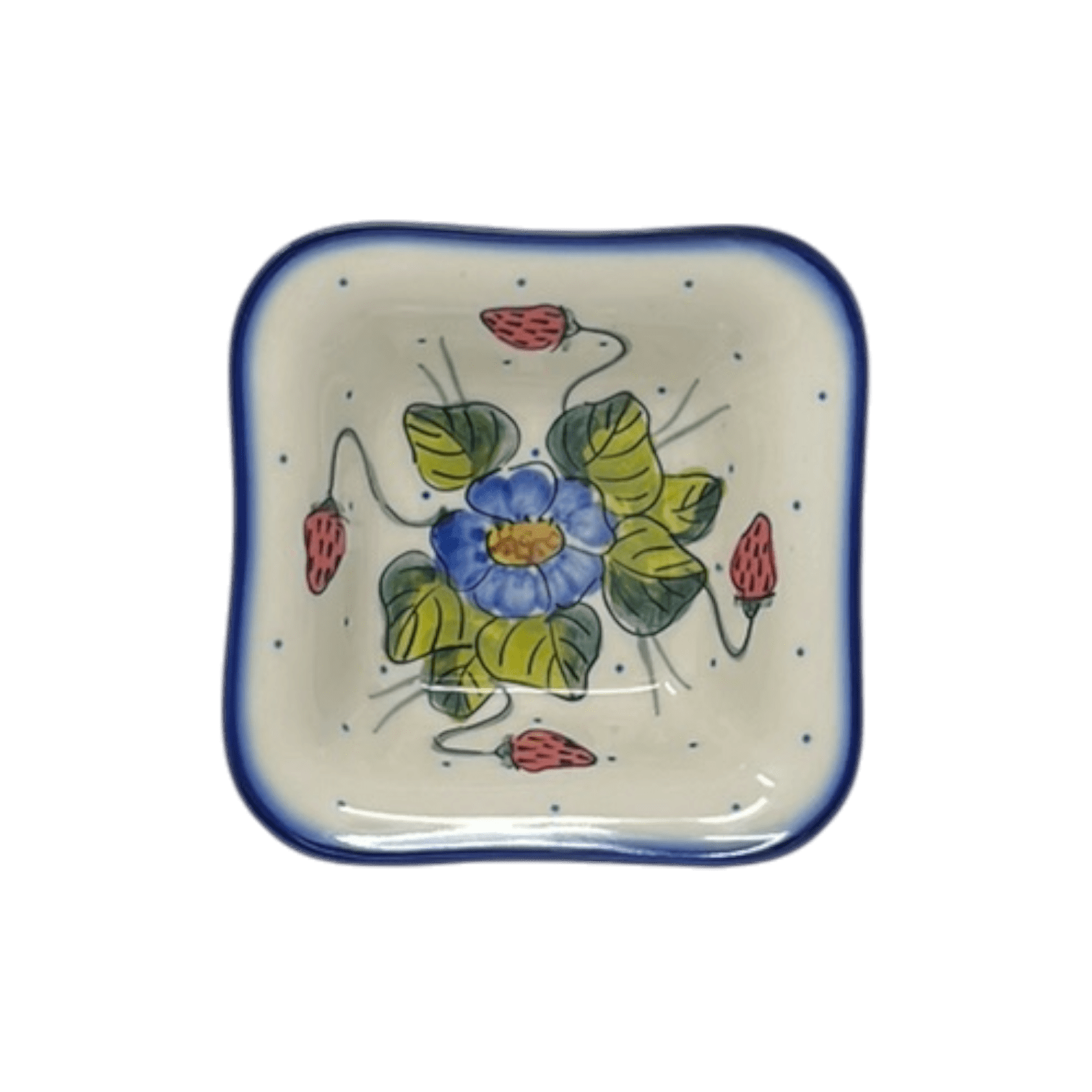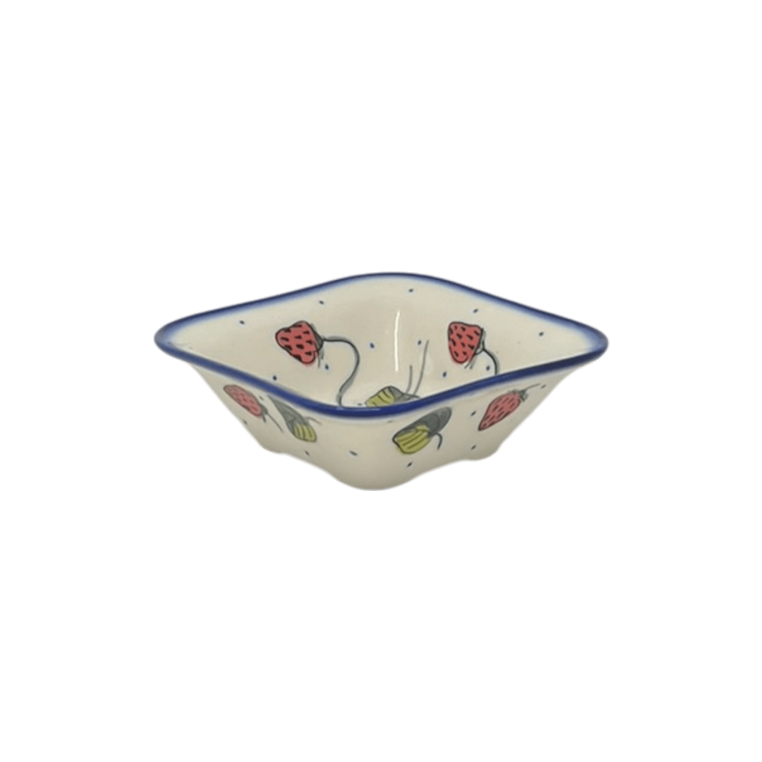 Bowl, Square, 5.25" Small, WR (WR12G) in "Strawberries & Blossoms" by W.R. Ceramika | WR12G-WR2 is backordered and will ship as soon as it is back in stock.