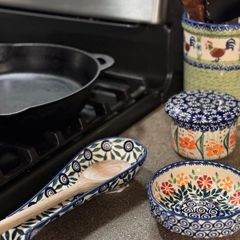 While Polish pottery is extremely durable, it should not be taken directly from the freezer and placed into a hot oven. In addition, cold water or frozen food should not be placed in a hot piece of pottery. Always allow cooling or warming to room temperatures before heating in an oven or placing in a freezer. If taken care of properly, your Polish pottery can last for generations!