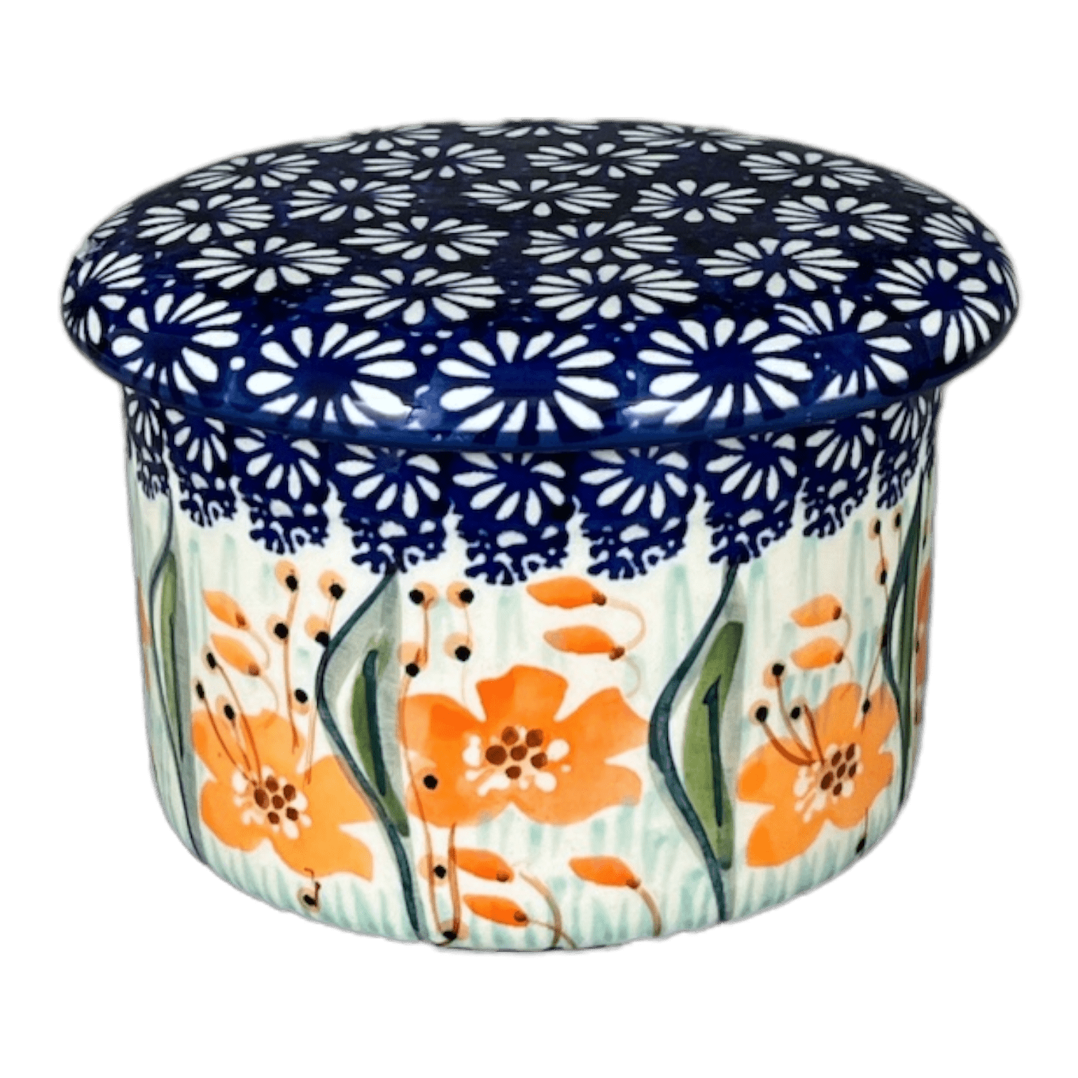 Imagine a splash of vibrant colors and intricate designs that transform an ordinary kitchen necessity into a delightful work of art. That's precisely what you get with the Polish Pottery Butter Crock from Manufaktura, standing proudly at 4.5 inches and adorned in the "Sun-Kissed Garden" pattern. This charming butter crock not only keeps your butter fresh and spreadable by resting it above a water bath, but it also serves as a centerpiece of conversation. Picture this: your favorite butter or margarine, easily accessible and creamy, without the hassle of refrigeration. Just add a pinch of salt to the water for an extra defense against molding, and voila! Fresh butter at your fingertips any time you desire.