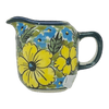 Introducing the enchanting Polish Pottery Creamer from Zaklady, a delightful splash of artistry for your table, nestled comfortably in the "Sunny Meadow" pattern (ART332). Imagine pouring cream, syrup, or your favorite condiment from this exquisite 2.5 oz creamer, each drop hinting at the lushness of a sun-drenched meadow. The "Sunny Meadow" design features a joyous array of large yellow flowers and petite blue blossoms, all set against a vibrant green, leafy backdrop. This design isn't just a pattern; it's a miniature garden party on your table, inviting smiles and conversation at every meal.