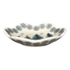 Every glance at this bowl reveals the depth of its artistry. The design boasts a bright yellow backdrop with a garland of light green and white flowers along the rim. Tiny teal dots, arranged in graceful triangular clusters, point towards the center, guided by slender green lines. Close to the base, small orange flowers add a warm, inviting touch. This design is not just a pattern but a narrative crafted by Manufaktura's most accomplished artists. Each piece, adorned with the "UNIKAT" stamp and the artist's signature, undergoes a meticulous process, ensuring it is not only a dish but a distinguished piece of art that reflects a signature level of creativity and skill.