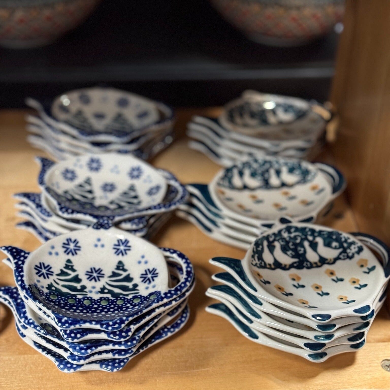 Imagine a splash of sunshine right on your tea table with the exquisite Polish Pottery Saucer from Manufaktura, featuring the vibrant "Sunshine Grotto" pattern. This charming 4.25" x 3.25" teapot-shaped saucer is not just a delight to behold but also incredibly versatile—perfect for resting your stirring spoons, holding teabags, or displaying lemon wedges with a flourish. Each piece, lovingly hand-painted in Boleslawiec, Poland, encapsulates the joyful essence of a sunny day with its predominantly yellow backdrop, adorned with playful green and red accents.