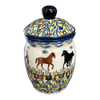 At 4.5" tall this Polish Pottery canister stores the little items. Sometimes used as a jam jar, this one is perfect for condiments or spices.