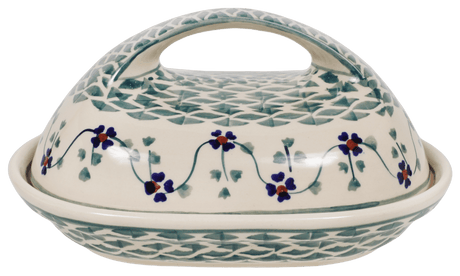 Butter Dish, American, 4" x 7.5" in "Woven Pansies" by Manufaktura | M074T-RV