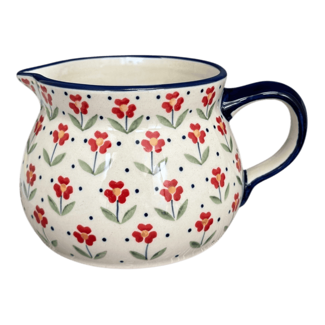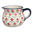 Introducing the enchanting Manufaktura 1 Liter Polish Pottery Pitcher, crafted in the heart of Boleslawiec, Poland. This charming pitcher, adorned in the "Simply Beautiful" pattern, is not just a vessel; it's a centerpiece that promises to captivate your guests with its traditional yet vibrant design. Featuring a delightful array of red flowers framed by subtle green leaves and playful blue dots, this pattern sings a song of Polish meadows in bloom. Each pitcher is a unique testament to the art of hand-stamping, where skilled artisans use the "punching" technique to breathe life into each creation, making it a perfect blend of beauty and practicality.