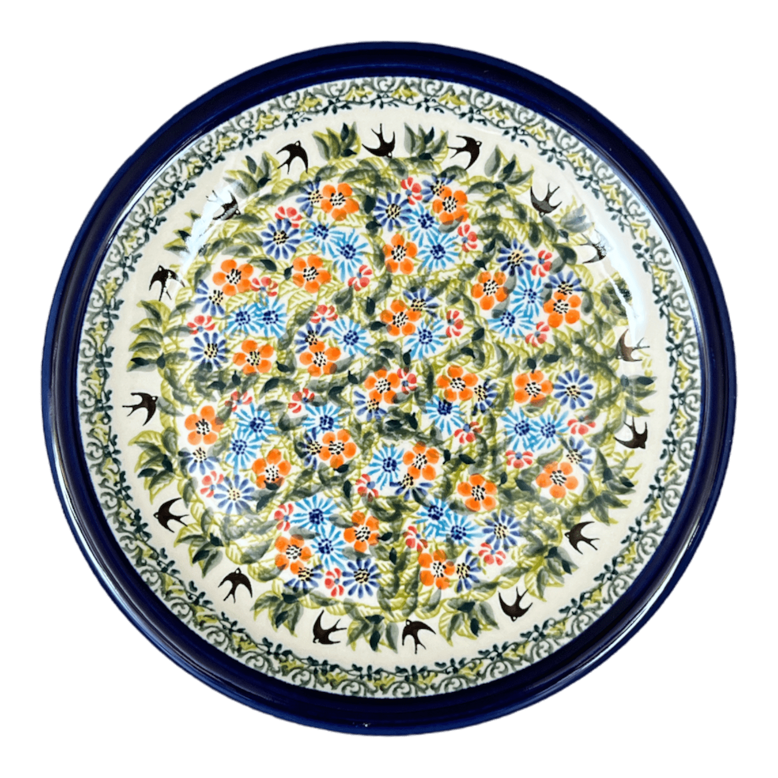 Beyond its stunning looks, this Polish pottery plate is built to last and handle the rigors of daily use. It is completely safe for the dishwasher, microwave, freezer, and oven (up to 425 degrees), making it as functional as it is beautiful. The high-quality materials used in its creation ensure that it is tough, durable, and resistant to chipping. Free of lead, nickel, and cadmium, it offers a safe, vibrant way to enjoy every meal. Whether you're looking to rejuvenate your table setting or searching for a unique gift, the Zaklady Polish Pottery Plate in "Floral Swallows" pattern is a choice that brings a touch of Polish heritage and artisanal charm right to your table.