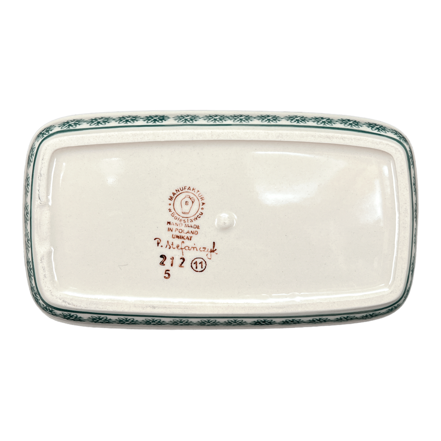 But this isn't just any butter dish; it's a masterpiece crafted by the elite artists of Manufaktura, a renowned Polish pottery house. These artists, recognized at the Signature level of artistry, personally oversee each step of their creations—from the initial design to the final brush stroke. This limited oversight not only ensures top-notch quality but also makes each dish a unique collector's item, complete with the "UNIKAT" stamp and the artist's own signature on the bottom. The meticulous attention to detail and the vibrant, enduring colors make this dish not just a home for your butter but a true work of art to adorn your table.