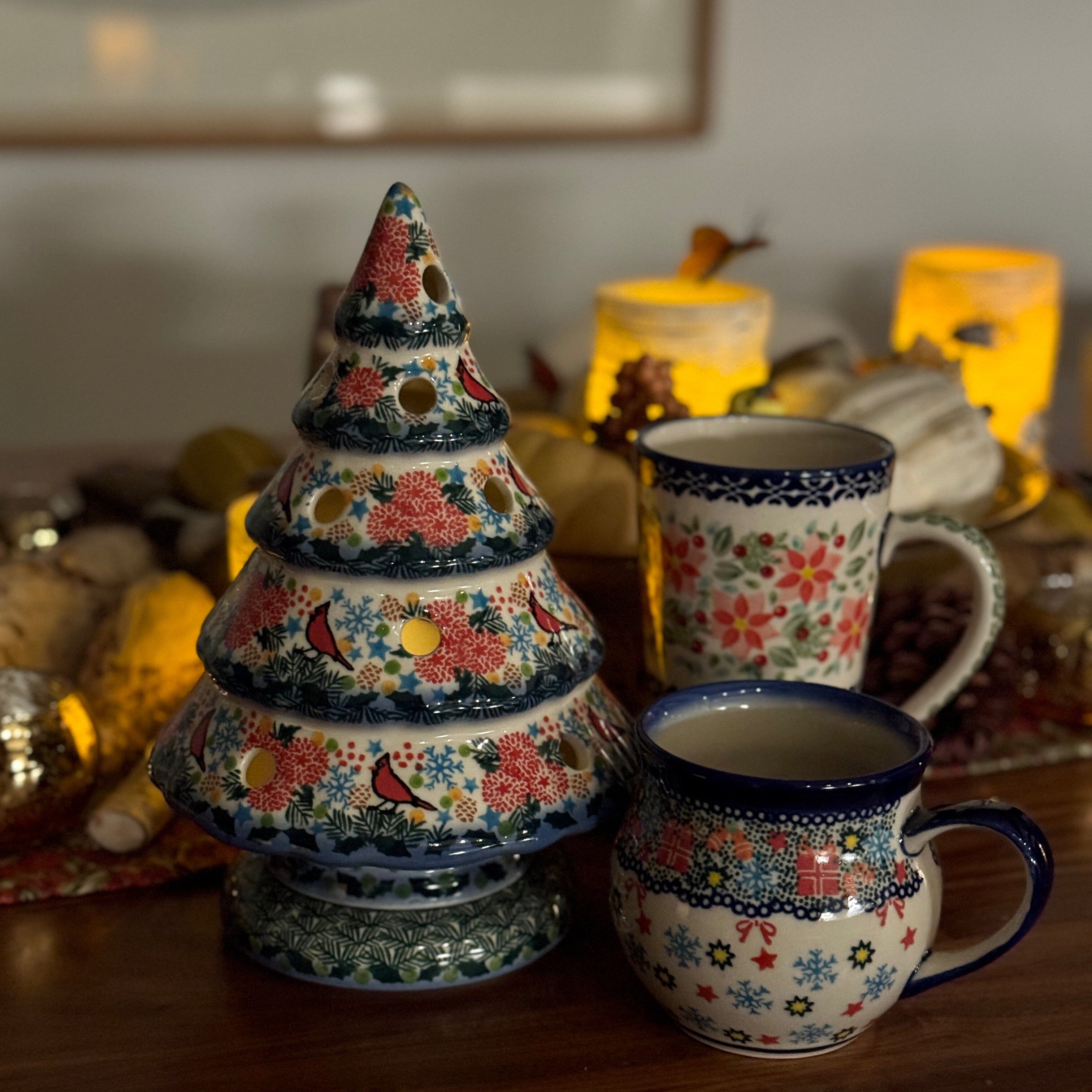 Luminary, Christmas Tree, 10" Large in "Winter Cardinal" by Galia | GCH05-AS2 is backordered and will ship as soon as it is back in stock.