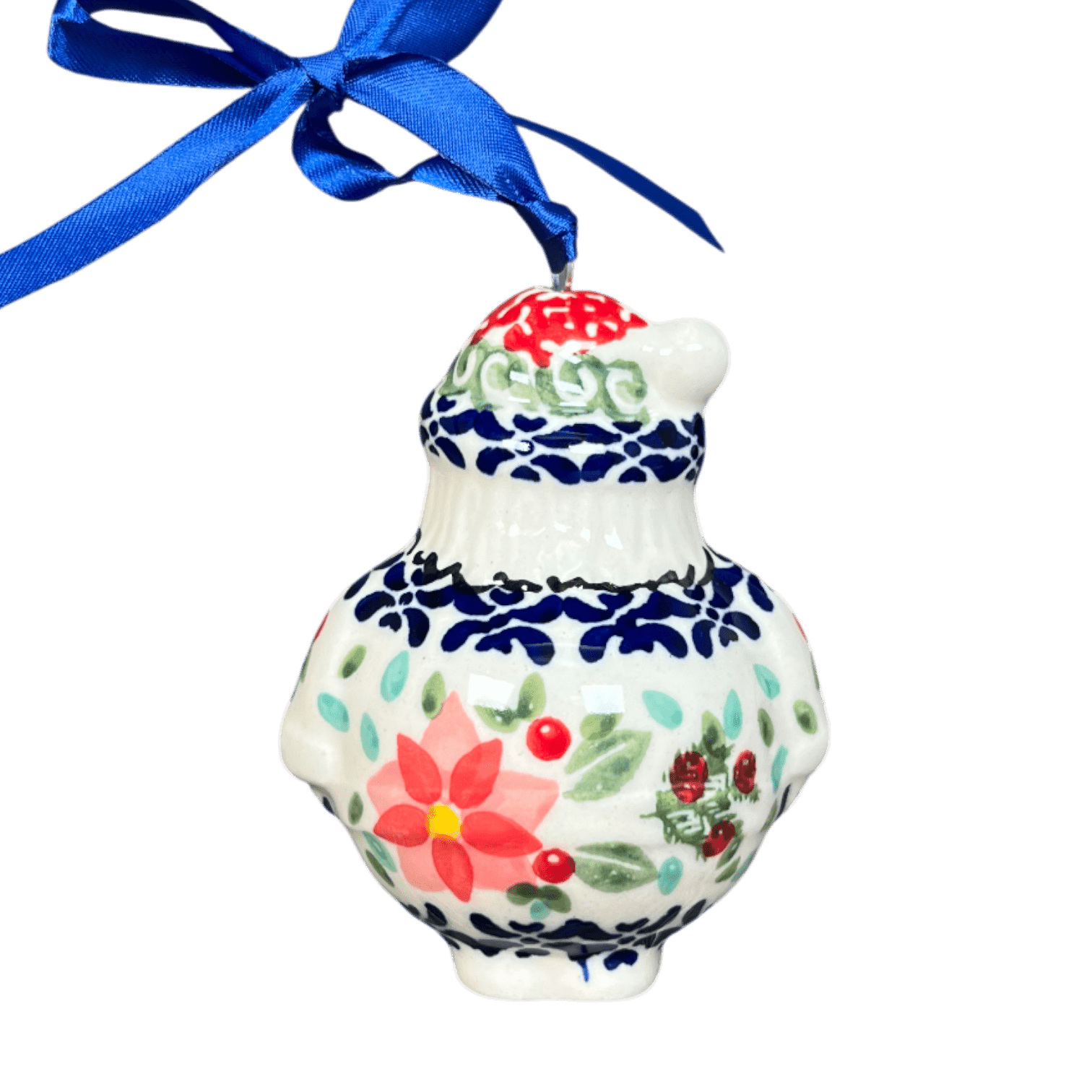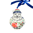 Step into the holiday spirit with the enchanting "Pink Poinsettia" Polish Pottery Ornament from Manufaktura, a true masterpiece crafted in the heart of Boleslawiec, Poland. This delightful 2.5" Santa ornament is a burst of festive colors, adorned with rings of pink poinsettia flowers encircling green leaves and red berries, all beautifully set against a vibrant background of green, red, and blue shapes. Each ornament is a unique creation, hand-painted by skilled artisans whose dedication to their craft is evident in every brush stroke. This piece isn’t just an ornament; it’s a slice of Polish heritage that promises to brighten your Christmas tree with its exquisite artistry and vibrant charm.