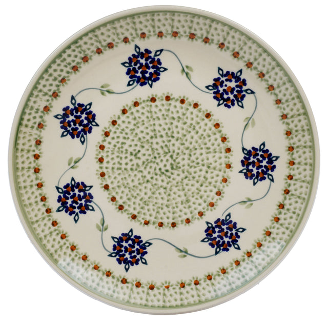 Step into the charming world of Polish Pottery with the exquisite 10" Dinner Plate from Manufaktura, adorned in the enchanting "Wedding Bouquet" pattern. This delightful dish is not just a plate, but a canvas that showcases a traditional blend of art and utility. The design bursts with a bouquet of small blue flowers, each centered with a brown dot, encircled by tiny brown and green accents, all set against a crisp white background sprinkled with green dots. This pattern not only brings the freshness of a blooming garden right to your table but also celebrates the rich heritage of Polish craftsmanship.