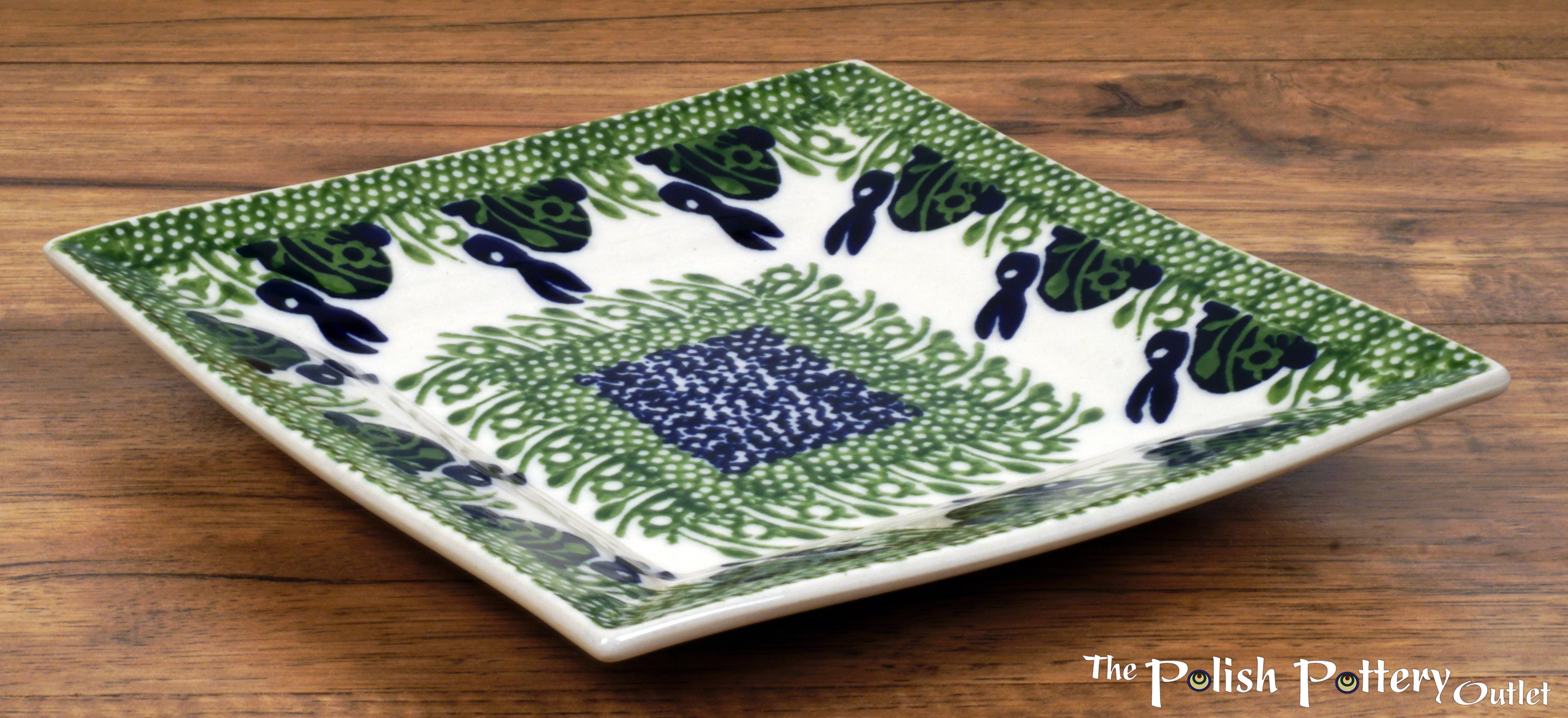 Introducing the fabulous Polish Pottery 7" Square Dessert Plates by Manufaktura in the delightful "Bunny Love" pattern (P324). These plates are not just your ordinary dessert plates - they are a work of art! Perfect for any occasion, these square plates are not only practical but also add a touch of elegance to your table setting.