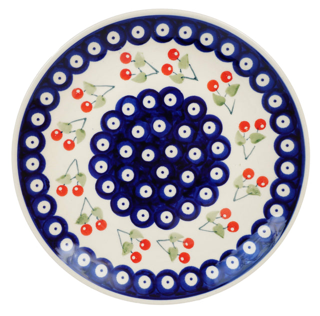 Introducing the Polish Pottery 8.5" Round Salad Plate by Manufaktura in the delightful "Cherry Dot" pattern (70WI). This plate is not just perfect for salads, but it also adds a touch of charm to your sandwiches, cookies, or desserts. Trust us, everything loves to be served on Polish Pottery!