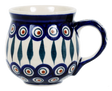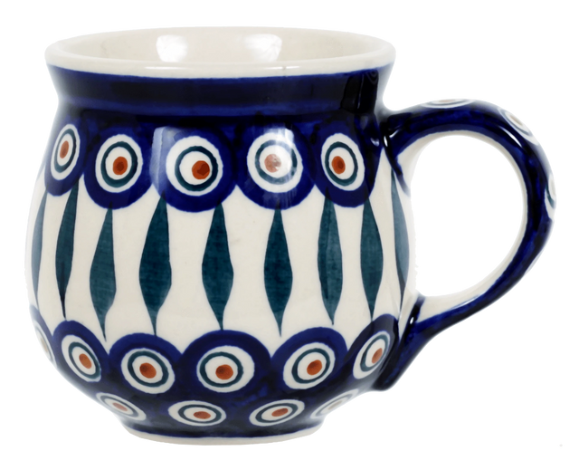 Start your day off right with the Polish Pottery 10 oz. Mug by Manufaktura in the beautiful "Peacock" pattern. This medium belly mug is the perfect shape for your morning coffee, and its exquisite design will surely put you in a good mood. With its predominate blue color, accented with green, white, and brown, the "Peacock" pattern is a stunning combination of nature-inspired elements.