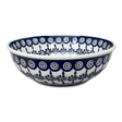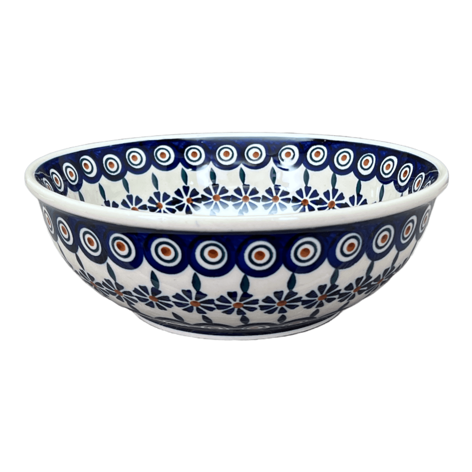 The "Floral Peacock" pattern is a true work of art. It showcases a mesmerizing combination of flowers and peacocks in a predominantly blue color, with accents in white, brown, and green. Each piece is meticulously hand-painted by skilled artisans in Boleslawiec, Poland. The attention to detail is truly remarkable, making these bowls not just functional, but also a feast for the eyes.