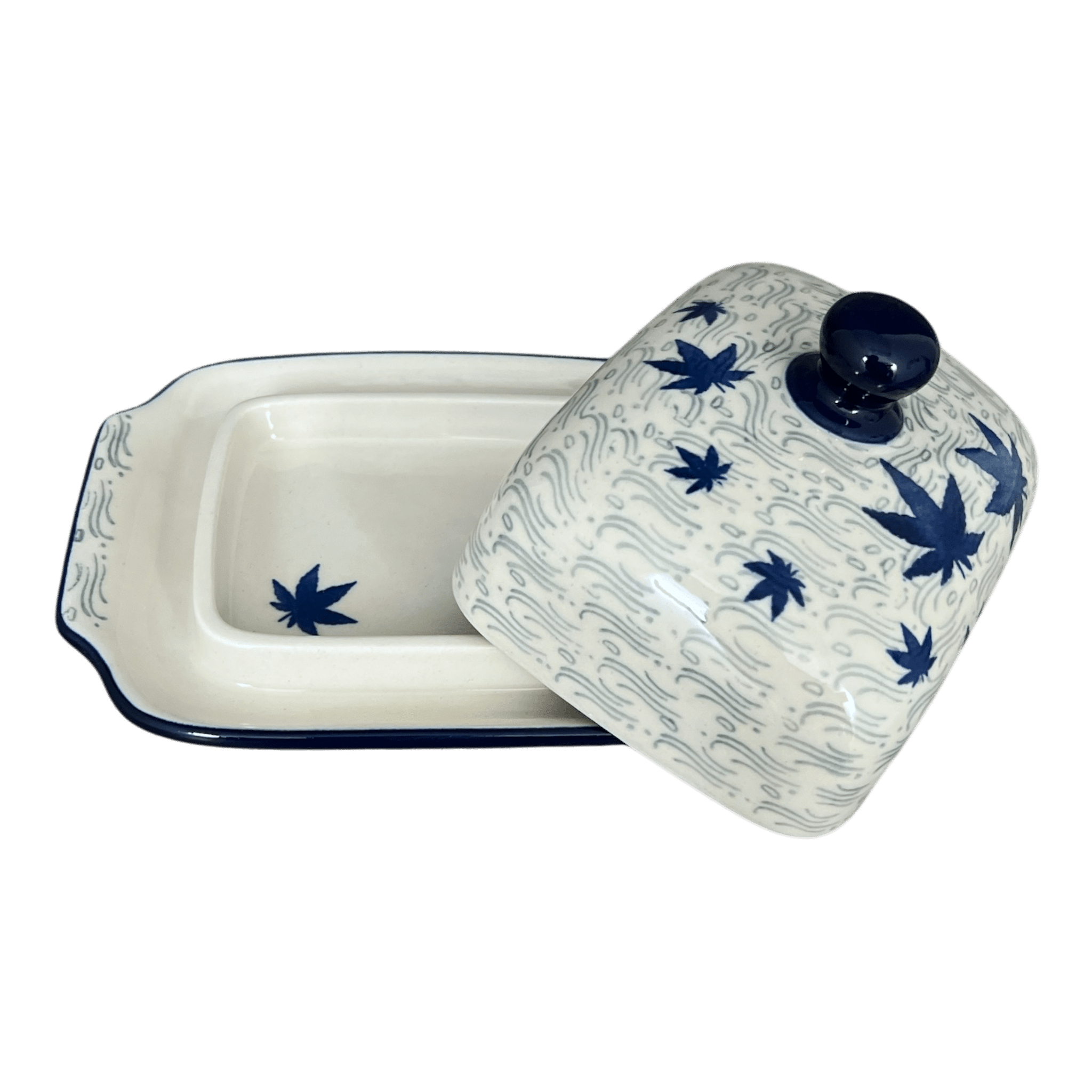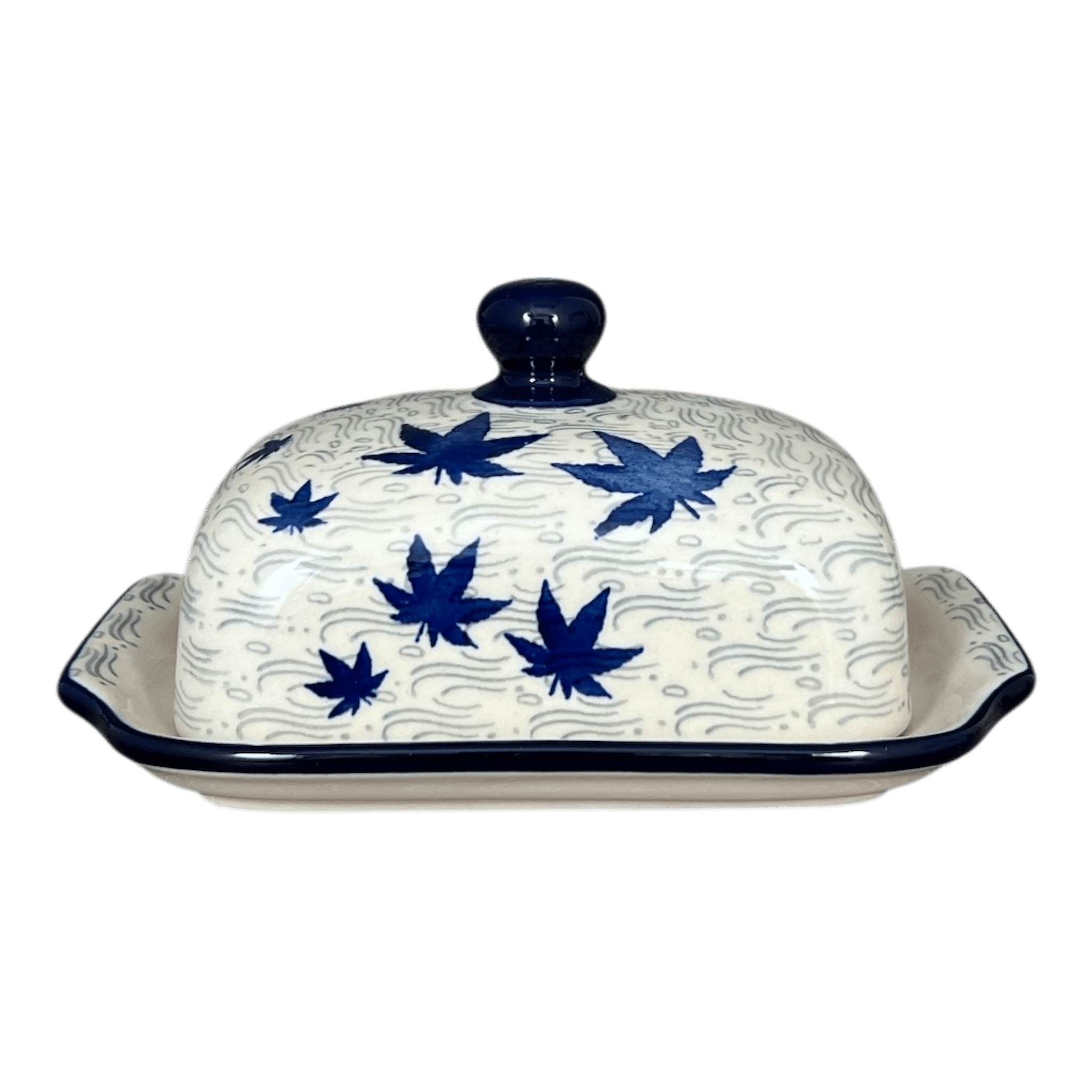 Butter Dish, 7" x 5.5" in "Blue Sweetgum" by Ceramika Artystyczna | A295-2545X is backordered and will ship as soon as it is back in stock.