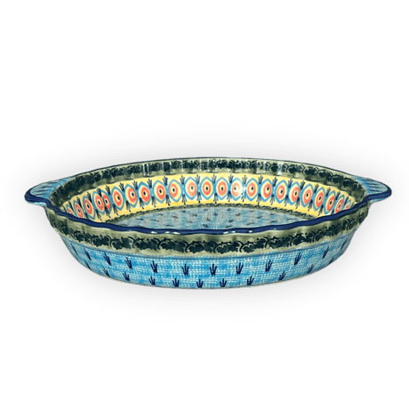 Baker, Round, Pie Plate, Handles, 9.75" in "Peacock" by Manufaktura | Z148T-54
