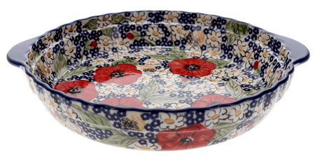 Baker, Round, Pie Plate, Handles, 9.75" in "Poppies & Posies" by Manufaktura | Z148S-IM02