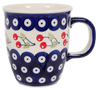 Imagine starting your day with a touch of artistic charm, cradling a steaming cup of your favorite brew in a delightful Polish Pottery Mug. The "Cherry Dot" pattern from Manufaktura is not just any design; it's a playful dance of vibrant cherries and whimsical dots set against a serene blue backdrop, accented by fresh pops of green, red, and white. This small belly mug, perfect for your morning coffee or evening tea, holds 7 oz of liquid joy and is a testament to traditional craftsmanship, where each piece tells its own unique story through its hand-painted details.