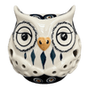 Who says your home decor can't be both enchanting and functional? Meet the delightful Polish Pottery Luminary, Owl, from Manufaktura, which is not just any ordinary decoration. Shaped like a wise owl and painted in the mesmerizing "Vineyard in Bloom" pattern, this luminary transforms any room into a cozy nook. Imagine the gentle glow of a tealight or a battery-operated candle flickering through this exquisite piece, casting playful shadows and creating a warm, inviting ambiance. The pattern itself is a work of art, featuring a white background adorned with dense bands of simple yet elegantly depicted green and blue flowers, connected by a delicate vine.