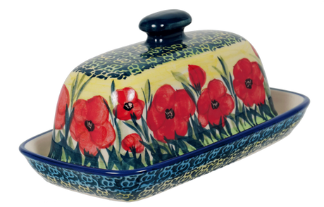 Butter Dish, American, 4" x 7.5" in "Poppies in Bloom" by Manufaktura | M074S-JZ34