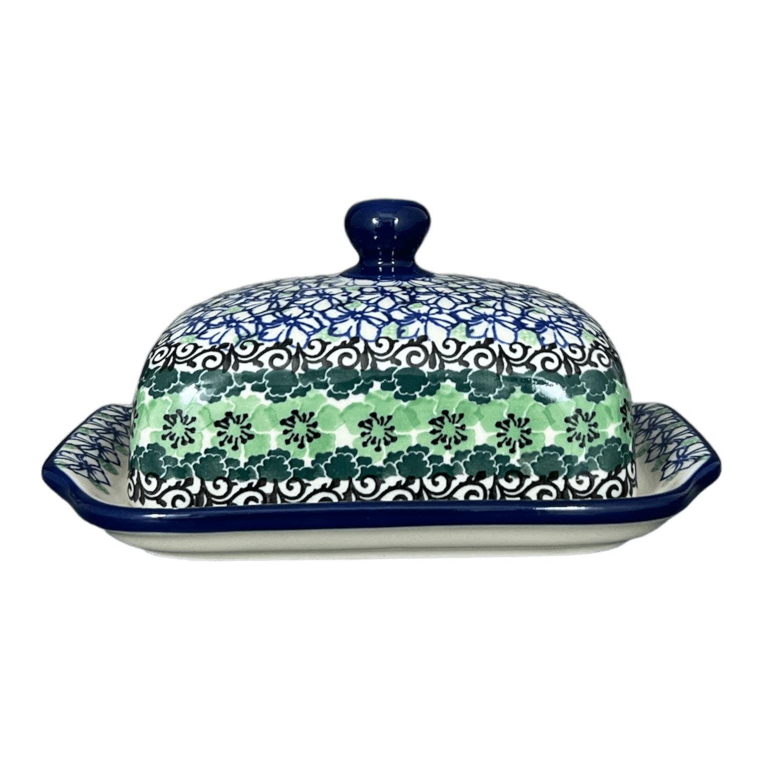 Butter Dish, 7" x 5.5" in "Ring of Green" by Ceramika Artystyczna | A295-1479X is backordered and will ship as soon as it is back in stock.