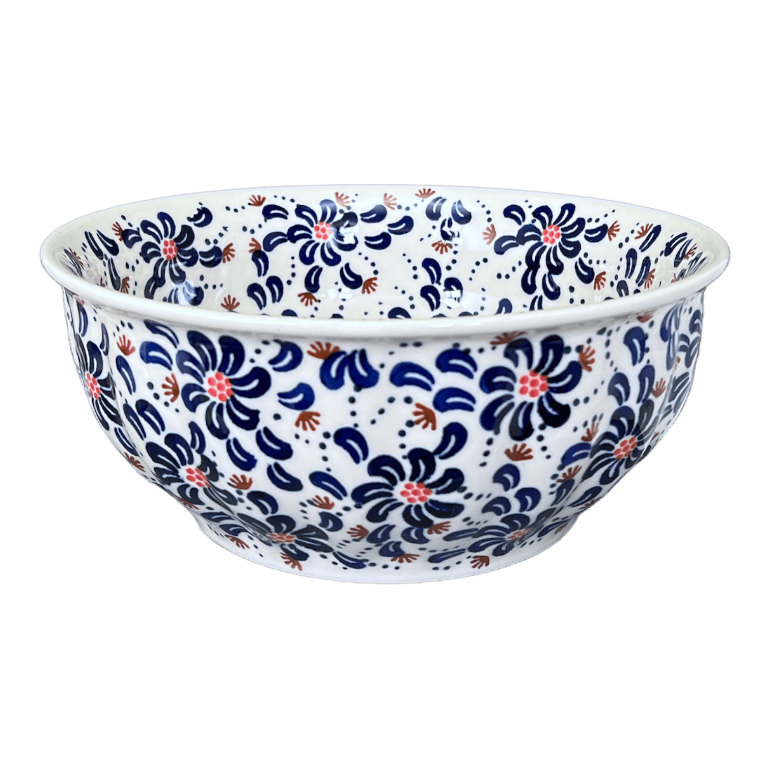 Introducing the stunning Polish Pottery 9" Bowl by Manufaktura in the captivating "Floral Fireworks" pattern (BSAS). This versatile bowl is not only perfect for serving salads, pastas, or stews, but it also doubles as a fantastic mixing bowl! With its dazzling design, the "Floral Fireworks" pattern features a delightful combination of flowers in a predominantly blue color, with accents in white, red, and brown.