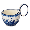 Imagine cradling a piece of art every time you sip your morning soup or serve a punch to your guests! Introducing the enchanting Polish Pottery Bowl from Ceramika Artystyczna, adorned with the mesmerizing "Butterfly Parade" pattern. Each 16 oz round bowl, complete with a practical loop handle, is not just a utensil but a gateway to a vibrant, fluttering butterfly garden. The delightful dance of blue butterflies with peach-colored spots, encircling peach flowers against a canvas of lush green leaves and quaint blue squares, brings a splash of color and joy to any meal.